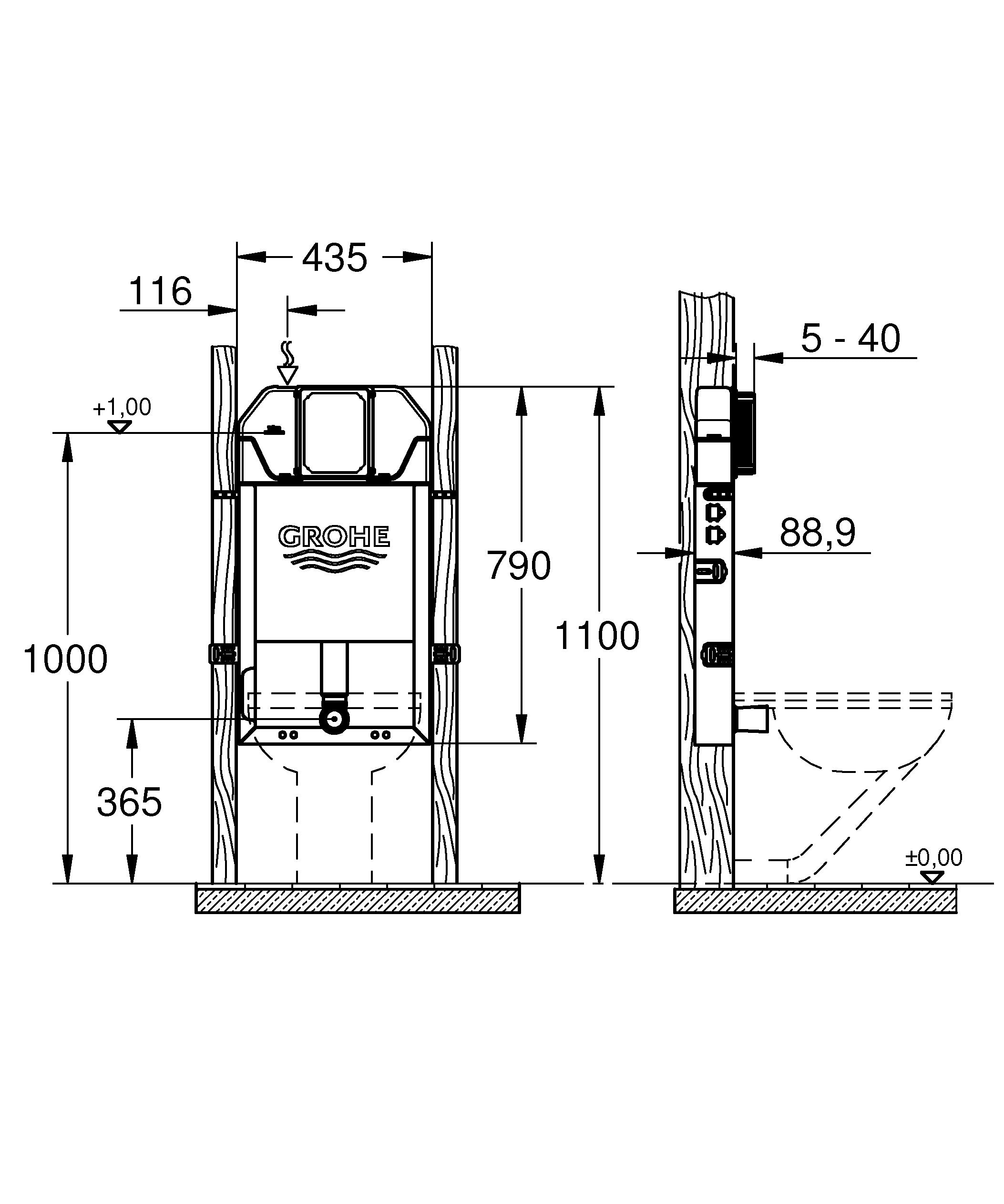 GROHE SOLO SLIM 90MM INWALL CISTERN WITH FRAME
