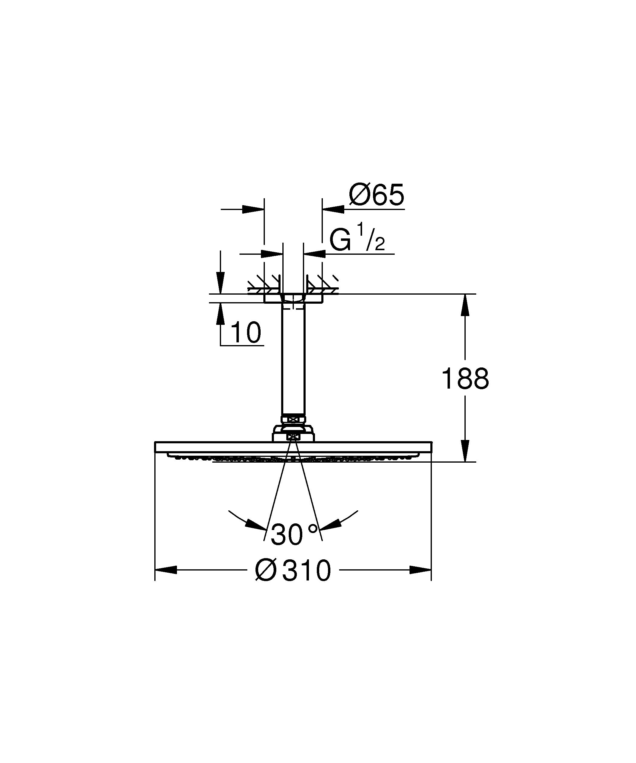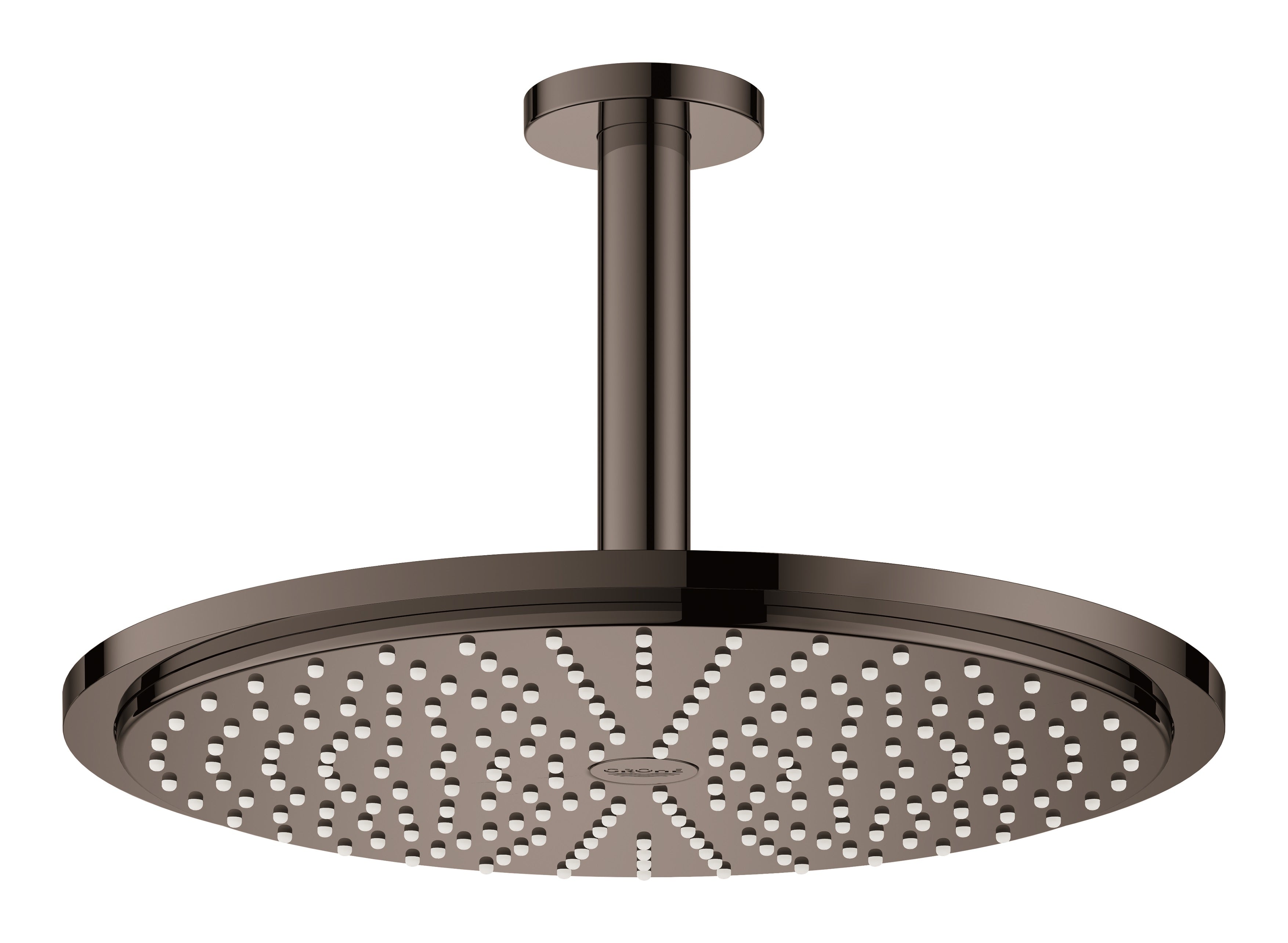 Cosmo Overhead wall shower provides a drenching overhead spray for an immersive showering experience. The hard graphite finish is scratch resistant as it is plated in GROHE's unique, state of the art PVD plating method to ensure maximum durability.
