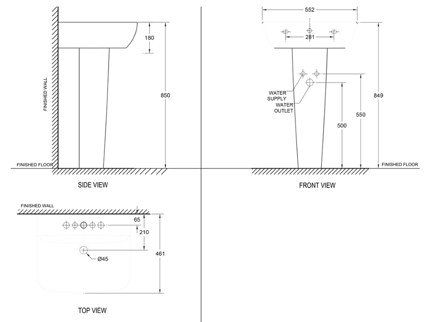 CYGNET FULL PEDESTAL TO SUIT CYGNET WALL BASIN 550 (PEDESTAL ONLY)